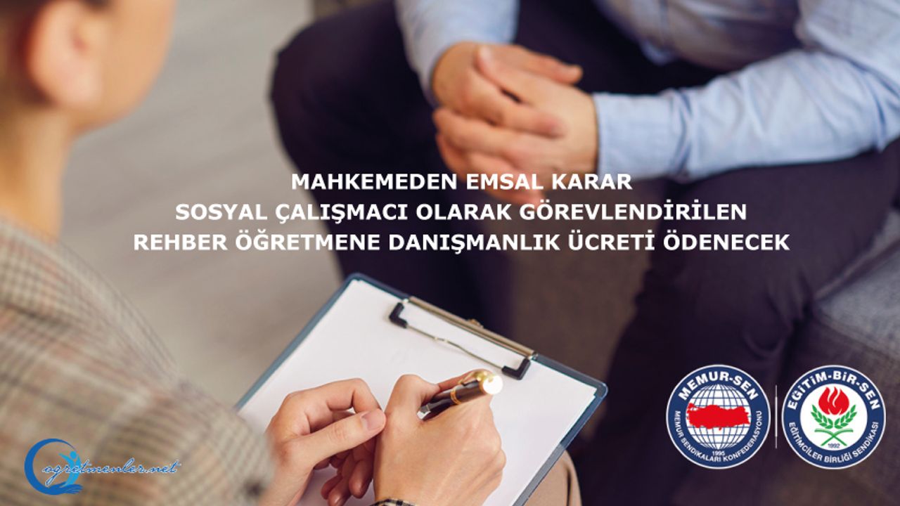 Mahkeme, danışma tedbiri uygulayan Aile ve Sosyal Hizmetler Bakanlığında görevli sosyal çalışma görevlilerine danışmanlık hizmeti ücreti ödendiğine işaret etti ve üyemizin de bu kapsamda değerlendirilerek kendisine “danışmanlık hizmeti ücreti” ödenmesi gerektiğine hükmetti.