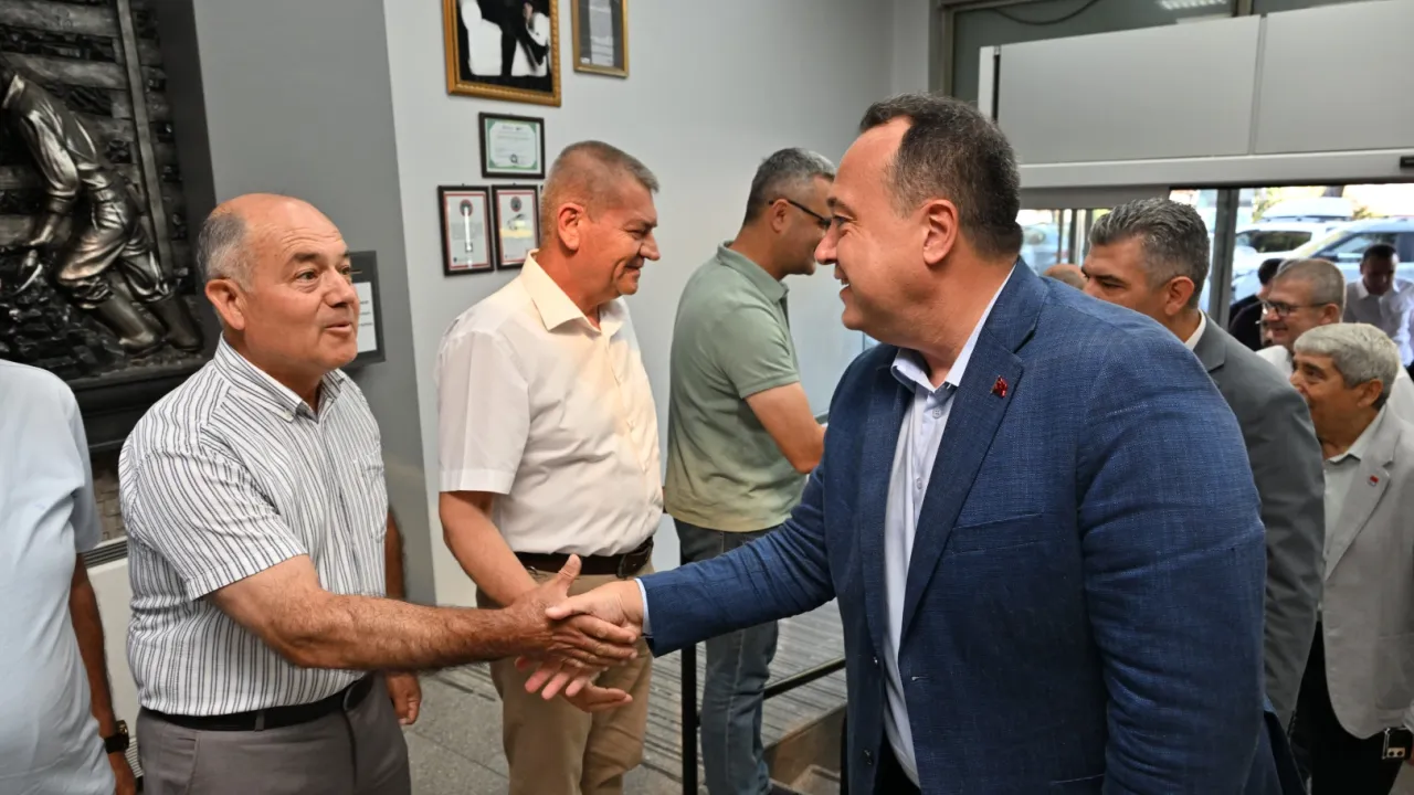 Manisa Büyükşehir Belediye Başkanı Besim Dutlulu, Soma’ya ziyarette bulundu. Soma Belediye Başkanı Sercan Okur ile bir araya gelen Başkan Dutlulu, yürütülen ve hayata geçirilecek projeler ile ilçenin ihtiyaçları üzerine değerlendirmelerde bulundu.MANİSA (İGFA) - Soma’ya giden Manisa Büyükşehir Belediye Başkanı Besim Dutlulu, bir dizi temaslarda bulundu. İlk olarak Büyükşehir Soma Koordinatörlüğü’nü ziyaret eden Başkan Dutlulu, Büyükşehir Belediyesi ile MASKİ Genel Müdürlüğü bünyesinde görev yapan personelle bir araya gelerek görüş alışverişinde bulundu.