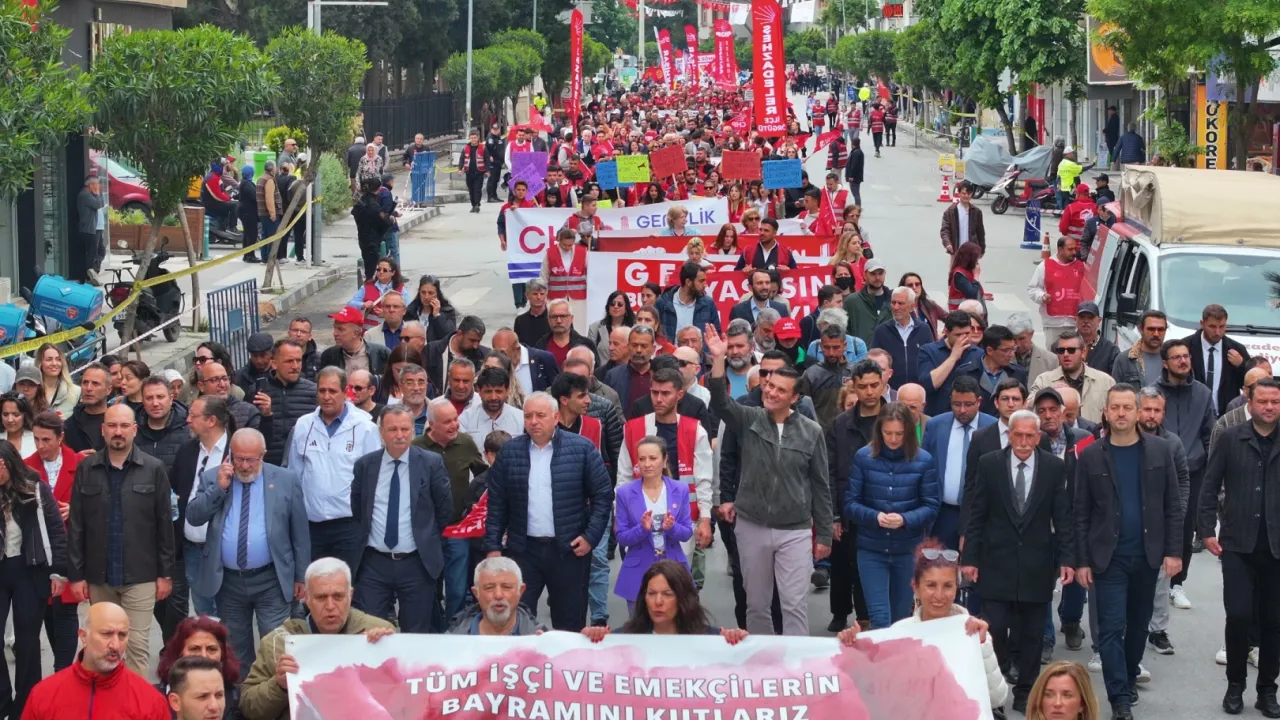 Manisa Büyükşehir Belediye Başkanı Ferdi Zeyrek, 1 Mayıs Emek ve Dayanışma Günü'nde sendikalar, işçiler ve vatandaşlarla birlikte kortej yürüyüşüne katılarak Cumhuriyet Meydanı’nda halka seslendi.MANİSA (İGFA) - 1 Mayıs Emek ve Dayanışma Günü kapsamında, Manisa’da yürüyüş düzenlendi. İşçiler, sendika temsilcileri, siyasi partiler ve sivil toplum kuruluşlarının temsilcileri ile birlikte Sultan Camii’nden Cumhuriyet Meydanı’na yürüyüş boyunca sloganlar atarak korteje destek veren Başkan Zeyrek’e, CHP Manisa İl Başkanı İlksen Özalper, CHP Manisa Milletvekili Ahmet Vehbi Bakırlıoğlu, Şehzadeler Belediye Başkanı Gülşah Durbay, Yunusemre Belediye Başkanı Semih Balaban ve çok sayıda vatandaş da eşlik etti.