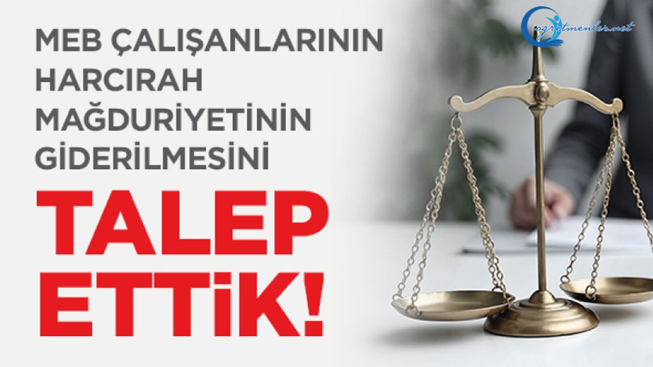 Yer değişikliği yapan personele 6245 sayılı Harcırah Kanunu'na göre harcırah ödemesi, ayrıldığı kurum tarafından yapılmalıdır. Bu konuda mağduriyet yaşayan bakanlık çalışanlarının harcırahlarının acil olarak ödenmesi talebinde bulunduk.