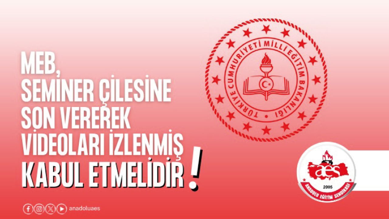 Buradan Sayın Yusuf Tekin'e sesleniyoruz.Bu seminer çilesine son verin.Öğretmenlerin dinlenme hakkını videolar vasıtasıyla engellemeyin.Öğretmeni bilgisayar,tablet,telefon başına mahkum etmeyin.