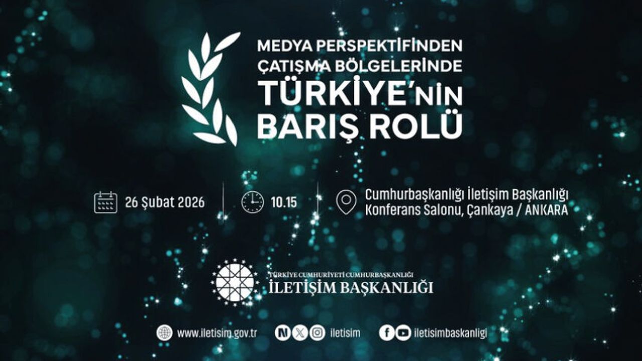Cumhurbaşkanlığı İletişim Başkanlığımız tarafından “Medya Perspektifinden Çatışma Bölgelerinde Türkiye’nin Barış Rolü Paneli” düzenlenecektir. : 26 Şubat 2026 : 10.15 : Cumhurbaşkanlığı İletişim Başkanlığı Konferans Salonu Kayıt için https://iletisim.gov.tr/turkce/26022026