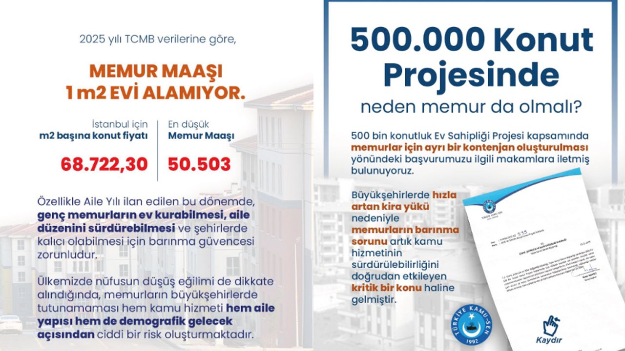 Özellikle Aile Yılı ilan edilen bu dönemde, genç memurların ev kurabilmesi, aile düzenini sürdürebilmesi ve şehirlerde kalıcı olabilmesi için barınma güvencesi zorunludur. Ülkemizde nüfusun düşüş eğilimi de dikkate alındığında, memurların büyükşehirlerde tutunamaması hem kamu hizmeti hem aile yapısı hem de demografik gelecek açısından ciddi bir risk oluşturmaktadır.