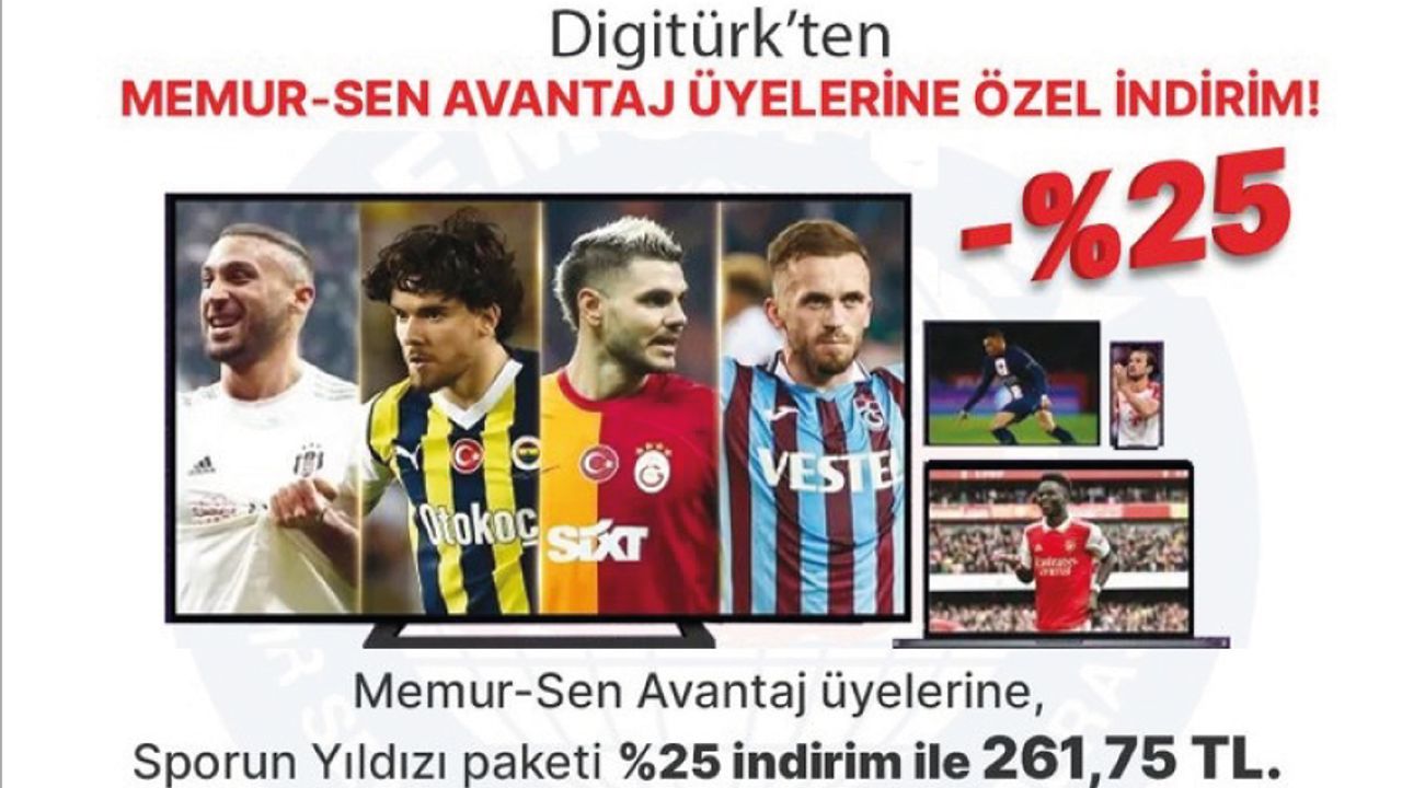 Memur-Sen Avantaj Üyelerine Özel; Sporun Yıldızı paketi %25 indirim ile 261,75 TL. Üstelik ilk 6 ay tüm dizi ve film kanalları hediye. 4 Ağustos 2025 "e kadar geçerli olacak kampanya hakkında detaylı bilgilere Kimlik/Karekod Kampanyaları Ev&Sinema Sistemleri Sektöründen ulaşabilir,sizinle iletişime geçilmesi için başvuru formunu doldurabilirsiniz. Size özel ayrıcalıklardan yararlanmak ve kampanyalardan haberdar olmak için hemen Memur-Sen Avantaj mobil uygulamasını indirin ve kullanmaya başlayın. #MemurSenAvantaj #AvantajMemurSen