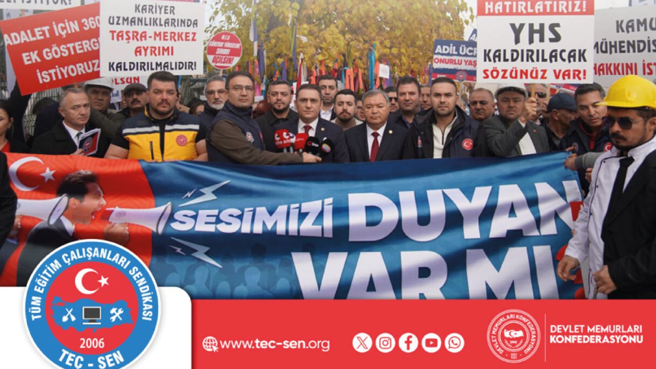 TEÇ-SEN ve Devlet Memurları Konfederasyonu olarak Çalışma ve Sosyal Güvenlik Bakanlığı önünde memurun ve emeklinin sesi olmak için güçlü bir basın açıklaması gerçekleştirdik.