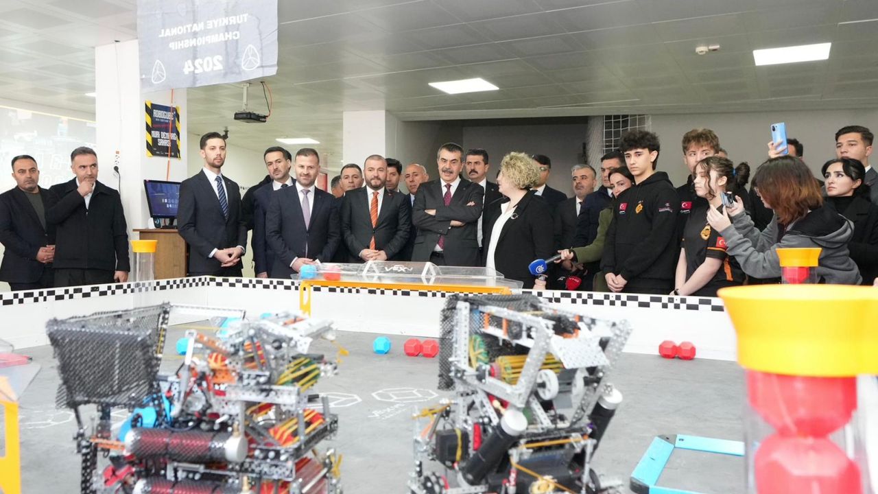 Bakan Tekin, daha sonra Robot Takımları Mühendislik Tasarım Atölyesi'ni ziyaret etti. Öğrencilerin tasarladıkları robotları inceleyen Tekin, öğrencilerden robotlar ve katıldıkları yarışmalar hakkında bilgi alarak kazandıkları ödülleri inceledi.