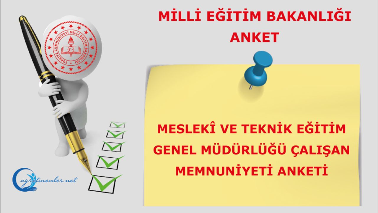 Meslekî ve Teknik Eğitim Genel Müdürlüğü Çalışan Memnuniyeti Anketi-2025 katılmak için tıklayınız.