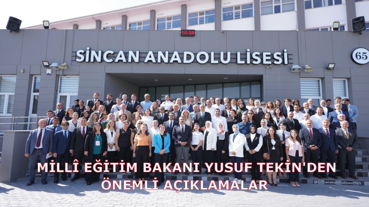 Millî Eğitim Bakanı Yusuf Tekin, 1-5 Eylül tarihleri arasında gerçekleştirilecek olan mesleki çalışma programının başlaması dolayısıyla Sincan Anadolu Lisesindeki canlı yayından öğretmenlere hitap etti.