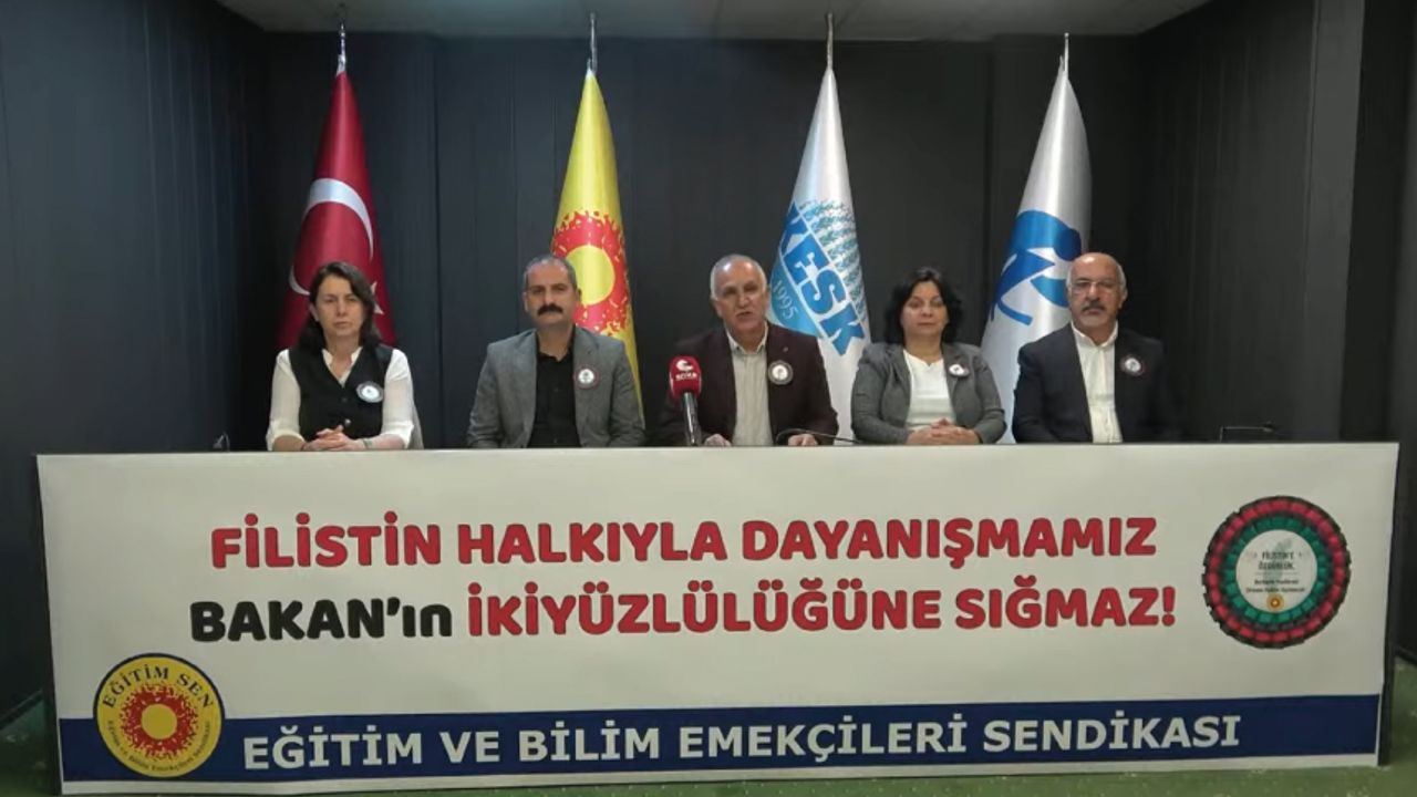 Milli Eğitim Bakanı Yusuf Tekin, önceki gün yaptığı bir konuşmada isim vermeden sendikamız Eğitim Sen’i hedef alarak Filistin konusunda “tek kelime etmediğimiz” yönünde gerçeği çarpıtan ifadeler kullandı. Bu açıklama, Bakan’ın daha önce de birçok kez yaptığı gibi, kamuoyunu yanıltma ve sendikamızı hedef gösterme amacını taşımaktadır.
