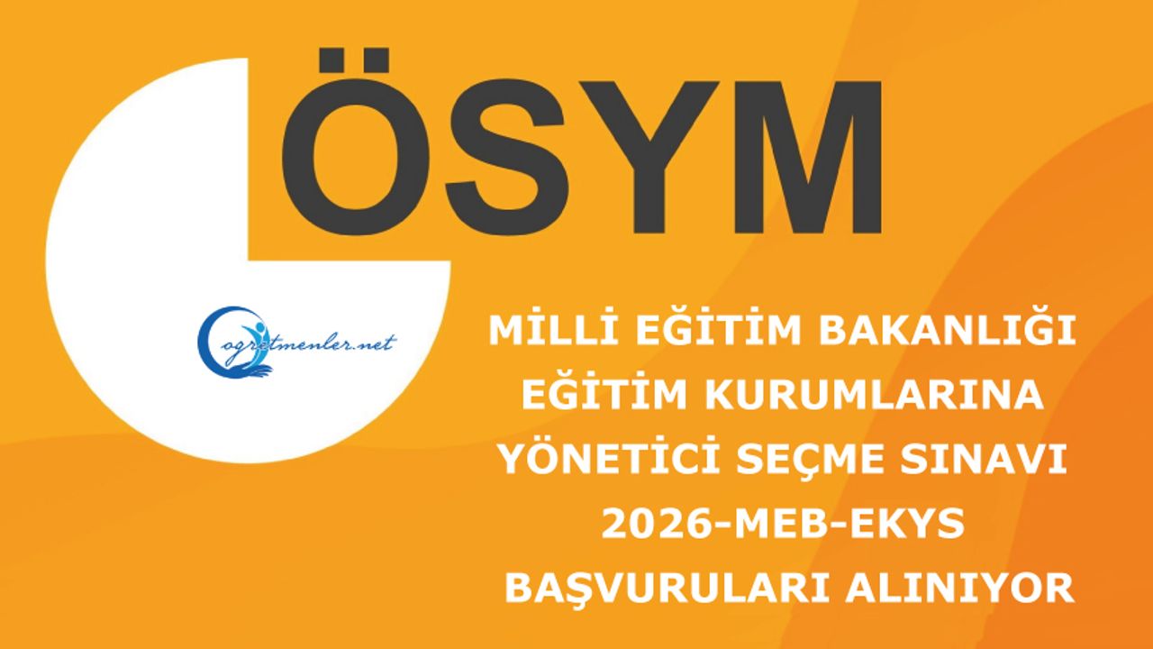 2026 Millî Eğitim Bakanlığı Eğitim Kurumlarına Yönetici Seçme Sınavı (2026 MEB-EKYS) duyurusu yayımlandı. 15 Mart'ta yapılacak MEB-EKYS başvuruları, bugünden itibaren 5 Şubat'a kadar alınacak.