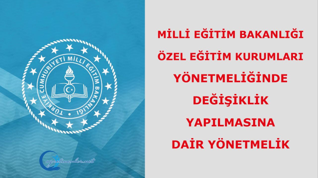 MİLLİ EĞİTİM BAKANLIĞI ÖZEL EĞİTİM KURUMLARI YÖNETMELİĞİNDE DEĞİŞİKLİK YAPILMASINA DAİR YÖNETMELİK