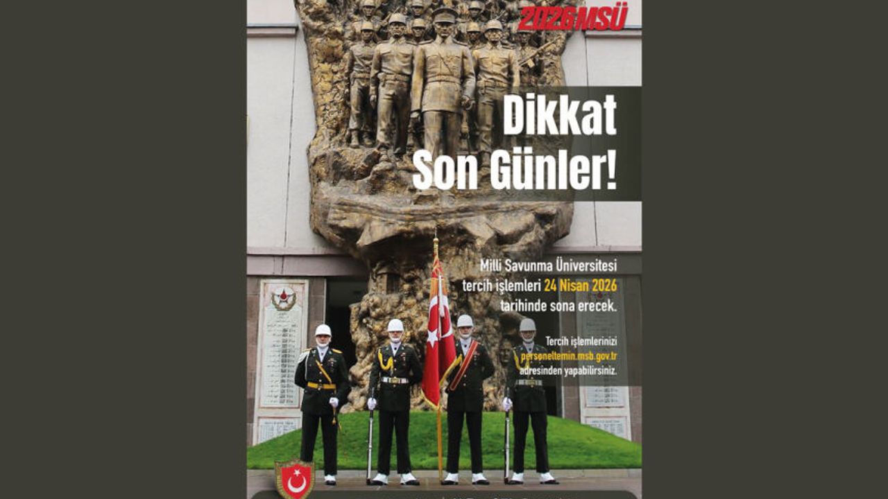 Milli Savunma Üniversitesi tercih süreci 24 Nisan'da tamamlanıyor. Geleceğine yön vermek isteyen tüm adaylarımızı okul seçim işlemlerini tamamlamaya davet ediyoruz. İşlemlerinizi http://personeltemin.msb.gov.tr adresi üzerinden gerçekleştirebilirsiniz. #2026MSÜ #GeleceğinKomutanıSenOl