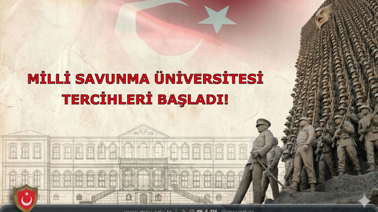 Geleceğin Türk Silahlı Kuvvetlerinde yer almak isteyen gençler, Milli Savunma Üniversitesi tercihleri başladı! Tercih işlemlerinizi 25 Mart - 24 Nisan 2026 tarihleri arasında http://personeltemin.msb.gov.tr adresinden yapabilirsiniz.