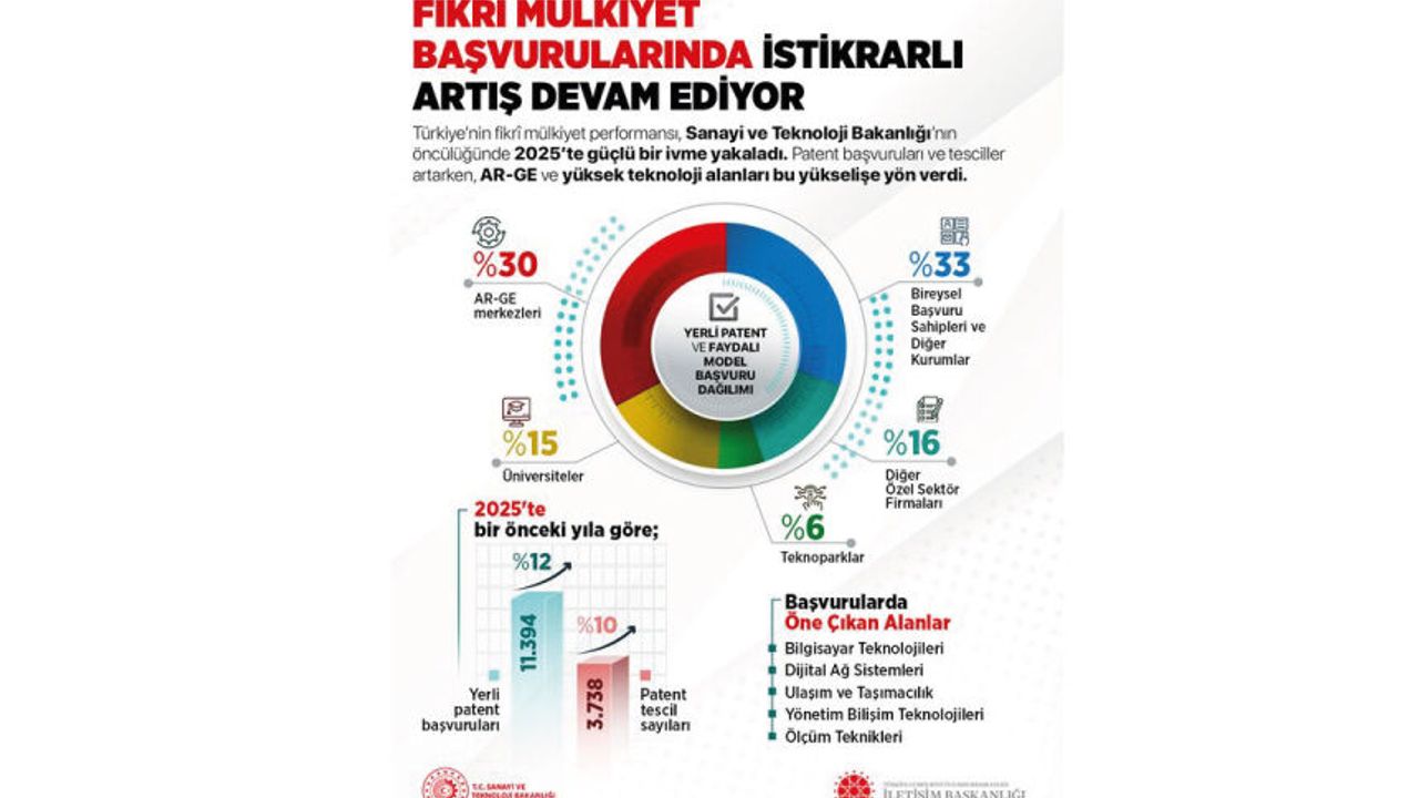 T.C. İletişim Başkanlığı Sanayi ve Teknoloji Bakanlığının öncülüğünde fikrî mülkiyet ekosistemi büyümeye devam ediyor. Millî Teknoloji Hamlesi yolculuğunda patentlerimiz bize güç katıyor.