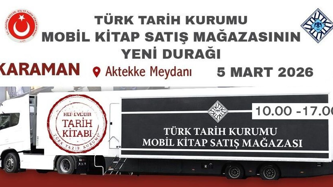 Mobil kitap satış mağazamız yayınlarımızı ve yazarlarımızı okurlarımızla buluşturmaya devam ediyor. Mobil mağazamızın yeni durağı #Karaman! Tüm okurlarımızı 5 Mart'ta Aktekke Meydanı'nda olacak mobil mağazamıza bekleriz. #TTKyayınları #HerEveBirTarihKitabı