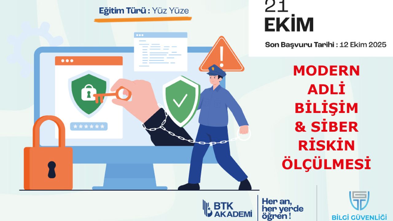 BTK Akademi tarafından düzenlenen Modern Adli Bilişim ve Siber Riskin Ölçülmesi Eğitiminin detaylarına ulaşmak ve eğitime katılmak için tıklayınız.