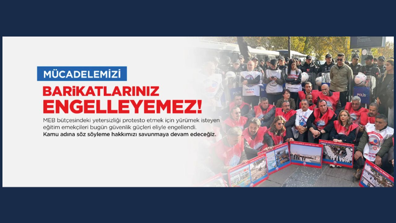 TBMM Plan ve Bütçe Komisyonu'nda Milli Eğitim Bakanlığı'nın bütçe görüşmeleri nedeniyle eğitimdeki sorunları dile getirmek için Milli Eğitim Bakanlığı önünden Meclis'e gerçekleştirmek istediğimiz yürüyüş güvenlik güçleri tarafından engellendi.