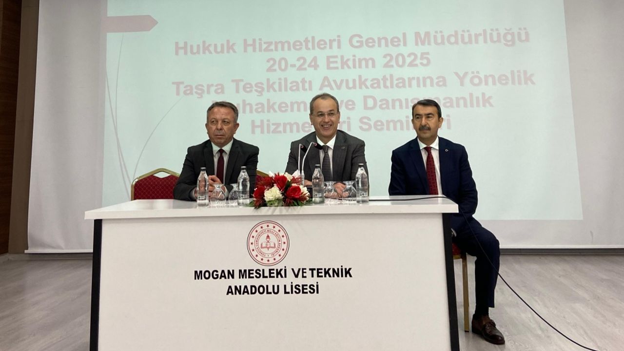 Bakanlığımız hukuk hizmetlerinin etkili, verimli ve usul ekonomisine uygun şekilde yerine getirilmesi ve bu hizmetlerin yürütülmesinde uygulama birliğinin sağlanması, ulusal ve uluslararası hukuki gelişmelerin yakından takip edilmesi ve çalışanlarımız arasında kurum kültürün geliştirilmesine katkı sağlamak amacıyla hazırlanan ve Mogan Mesleki ve Teknik Anadolu Lisesi Uygulama Otelinde, 20-24 Ekim 2025 tarihlerinde gerçekleştirilen "Merkez ve Taşra Teşkilatı Hukuk Müşaviri ve Avukatlara Yönelik Muhakemat ve Danışmanlık Hizmetleri Semineri" sona erdi.