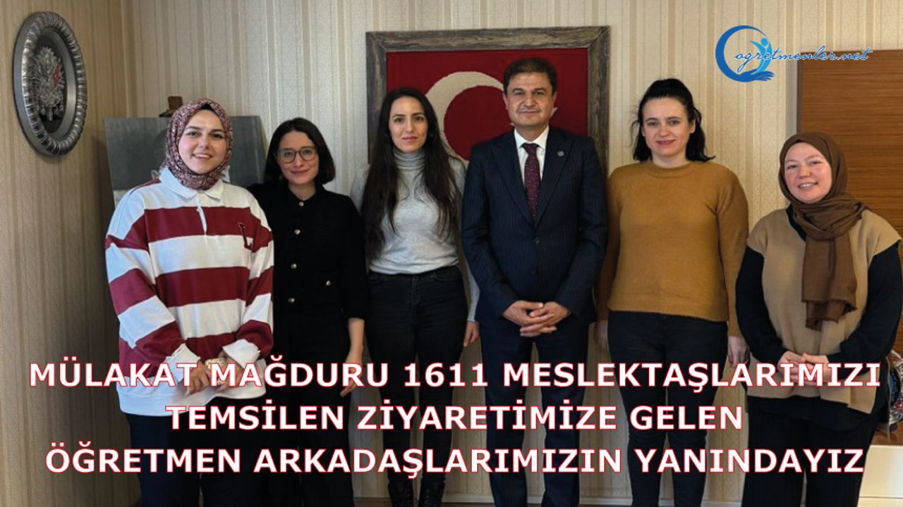 Mülakat mağduru 1611 meslektaşlarımızı temsilen ziyaretimize gelen öğretmen arkadaşlarımızın yanındayız.Haklı mücadelelerini takip ediyoruz.