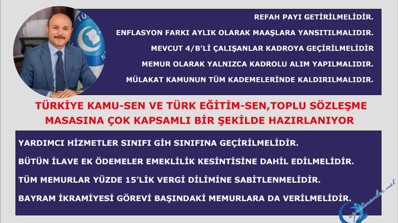8. Dönem Toplu Sözleşme Görüşmelerinin ağustos ayında başlayacağını hatırlatan Geylan, Türkiye Kamu-Sen ve Türk Eğitim-Sen’in toplu sözleşme masasına çok kapsamlı bir şekilde hazırlandığını belirtti. Türkiye Kamu-Sen’in toplu sözleşme görüşmelerindeki kırmızı çizgilerini sıralayan Geylan, öncelikli taleplerinden birinin refah payının kalıcı hale getirilmesi ve enflasyon farkının maaşlara aylık olarak yansıtılması olduğunu ifade etti.