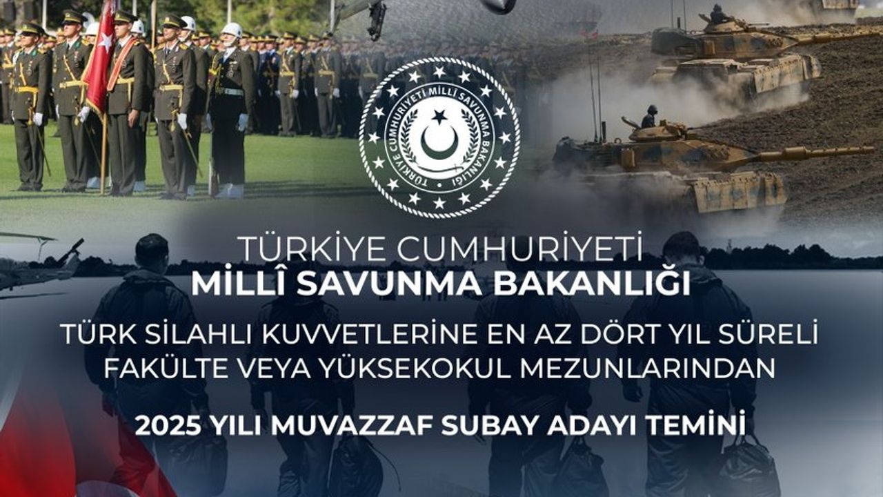 Türk Silahlı Kuvvetlerine En Az Dört Yıl Süreli Fakülte veya Yüksekokulu Mezunlarından 2025 Yılı Muvazzaf Subay Adayı Temini Başvuru İlanı yayımlanmıştır. Detaylı bilgiye https://personeltemin.msb.gov.tr internet adresinden ulaşabilirsiniz. #MillîSavunmaBakanlığı