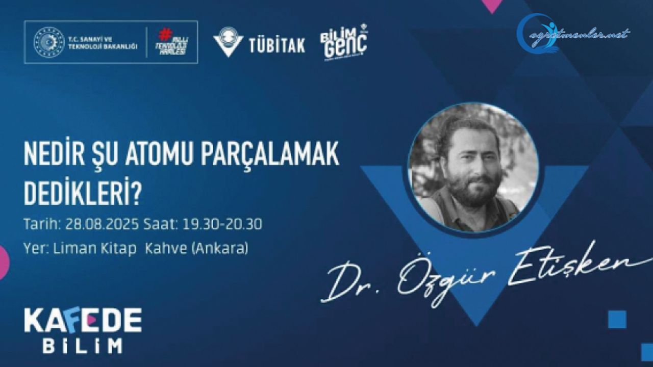 Gençlerin bilim insanlarıyla bir araya gelmesini ve dijital farkındalıklarını artırmasını amaçlayan Bilim Genç Kafede Bilim etkinlikleri, Ağustos ayında da tüm coşkusuyla devam ediyor. 28 Ağustos Perşembe günü saat 19.30-20.30 arasında Ankara Liman Kitap Kahve’de gerçekleşecek bu özel etkinliğimizde, Dr. Özgür Etişken ile atomun yapısı ve atomun parçalanmasını tartışacağız.