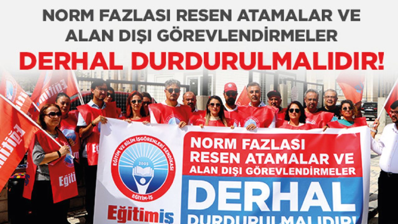 Eğitim-İş olarak, ülkenin dört bir yanında gerçekleştirdiğimiz basın açıklamaları ile norm fazlası resen atamaları ve alan dışı görevlendirmeleri protesto ettik.