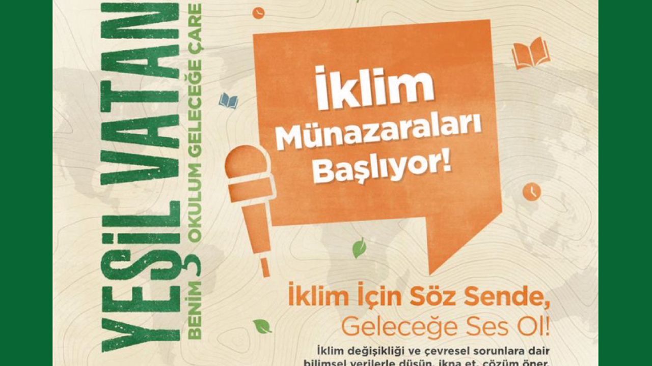 Ocak: İklim Değişikliği Ayı Başladı! Yeşil Vatan – Benim Okulum Geleceğe ÇARE etkinlikleri kapsamında ortaokul ve lise öğrencilerimiz için İklim Münazaraları başlıyor. Münazara programları ile öğrencilerimiz; iklim değişikliğinin nedenlerini ve sonuçlarını,