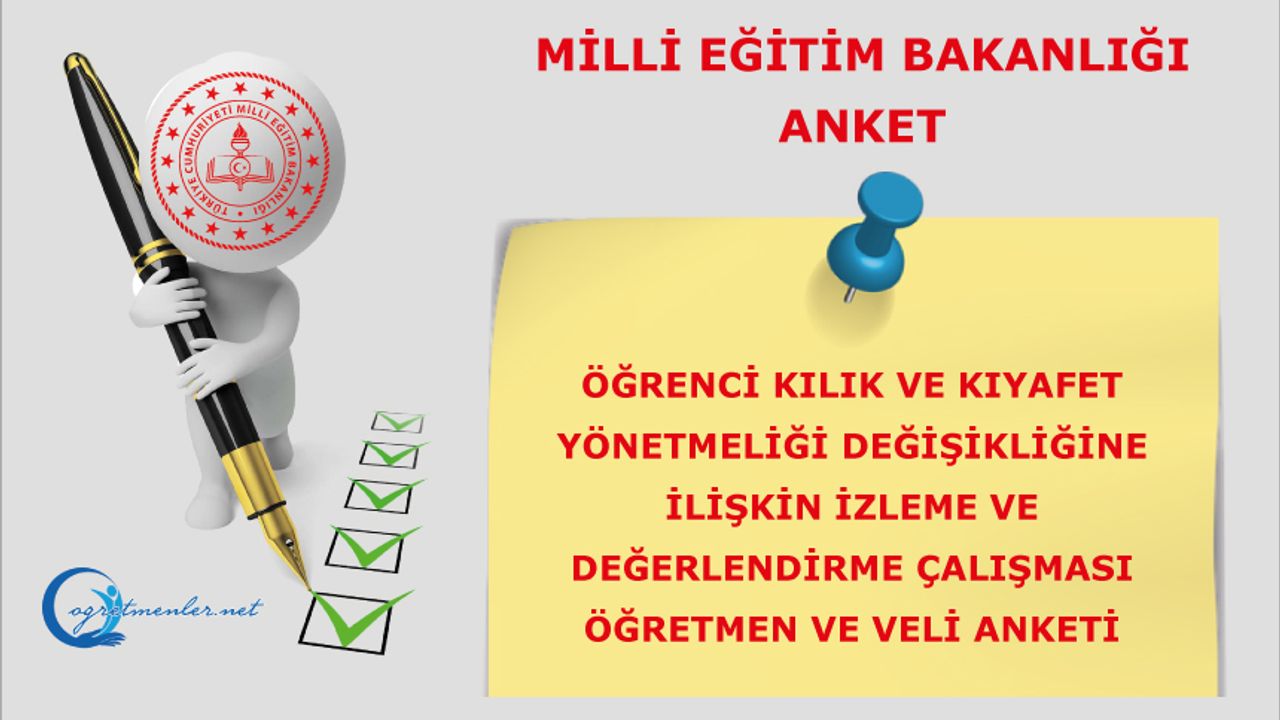 Öğrenci Kılık ve Kıyafet Yönetmeliği Değişikliğine İlişkin İzleme ve Değerlendirme Çalışması Öğretmen Anketi için tıklayınız.