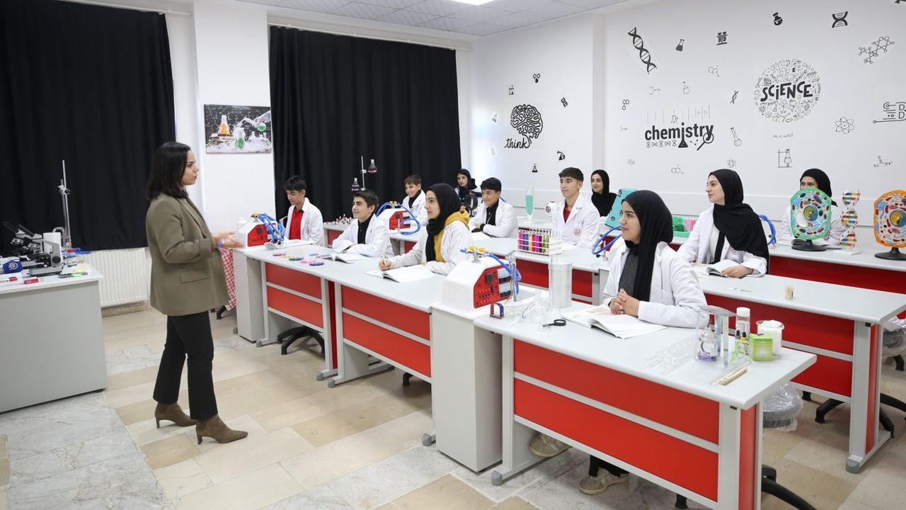 "Türkiye Yüzyılı Maarif Modeli" kapsamında kurulan fen bilimleri laboratuvarı sayesinde öğrenciler; kimya, fizik ve biyoloji derslerini uygulamalı olarak işlemeye başladı.