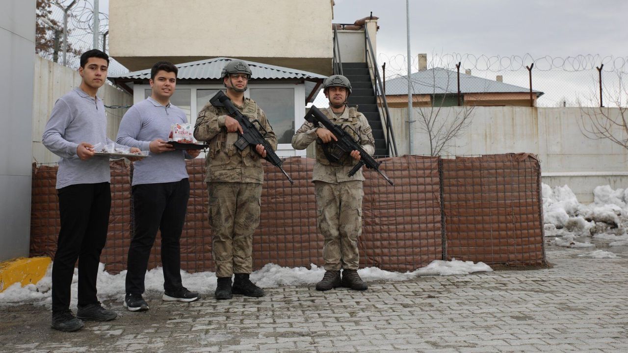Proje kapsamında bir araya gelen bir grup öğrenci, görev başındaki jandarma ve polislere hurma ve içecek ikram etti.