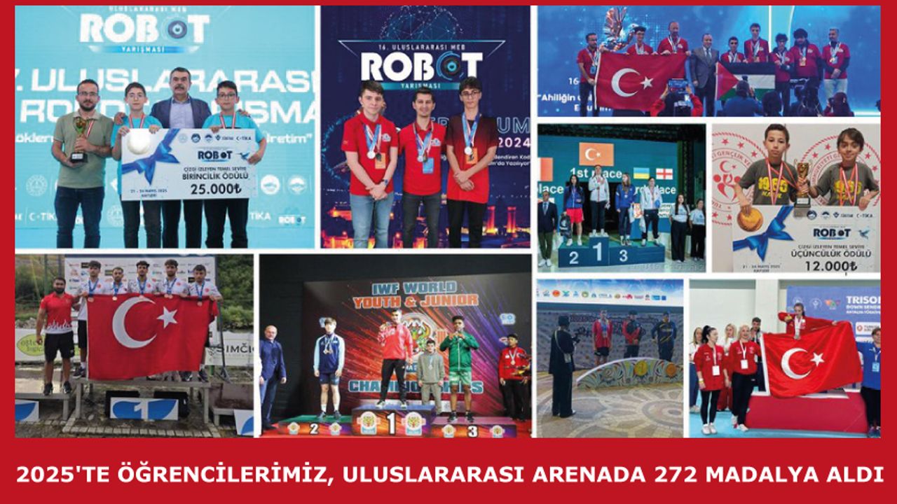 Millî Eğitim Bakanlığına bağlı ilkokul, ortaokul ve liselerde öğrenim gören öğrenciler, 2025 yılında uluslararası alanda Türkiye'yi başarıyla temsil etti. Öğrenciler, farklı branşlarda katıldıkları yarışmalarda 76 birincilik, 95 ikincilik ve 101 üçüncülük olmak üzere toplam 272 madalya kazandı.
