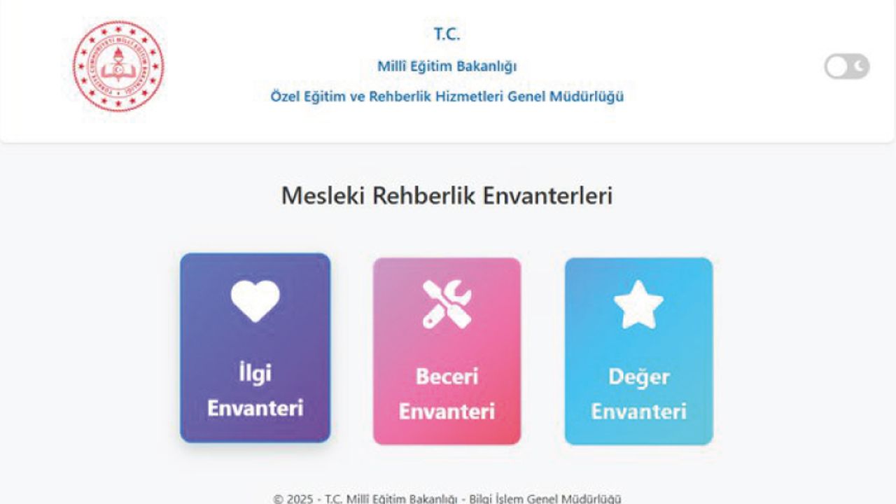 Öğrencilerin ilgi, yetenek ve kişilik özelliklerini tanıyarak eğitim ve meslek tercihlerinde doğru yönlendirilmelerini sağlamak amacıyla Millî Eğitim Bakanlığınca "Mesleki İlgi ve Mesleki Beceri Envanterleri" geliştirildi. Yazılım süreçleri tamamlanan envanterler, 2025-2026 eğitim öğretim yılından itibaren ortaokul ve lise öğrencilerine uygulanacak.