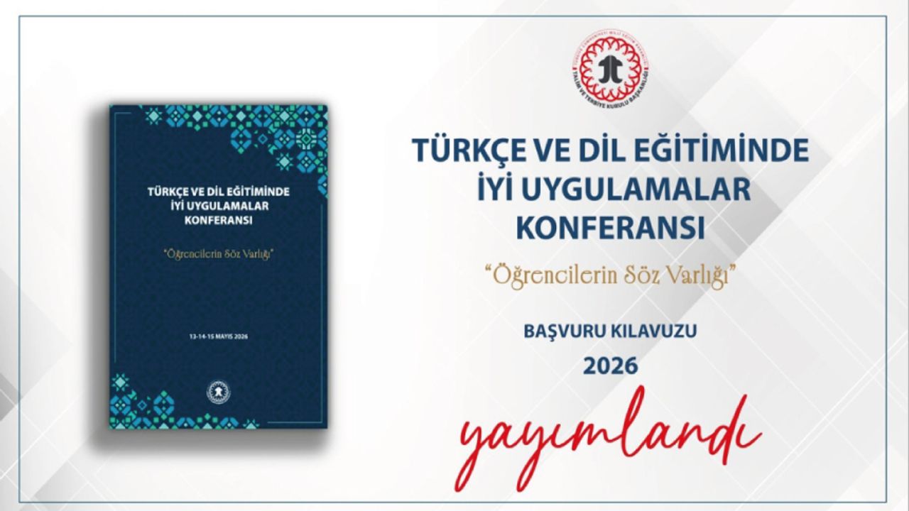 Millî Eğitim Bakanlığı Talim ve Terbiye Kurulu Başkanlığı tarafından, "Öğrencilerin Söz Varlığı" temasıyla 13-15 Mayıs 2026 tarihlerinde düzenlenecek "Türkçe ve Dil Eğitiminde İyi Uygulamalar Konferansı Başvuru Kılavuzu" yayımlandı.