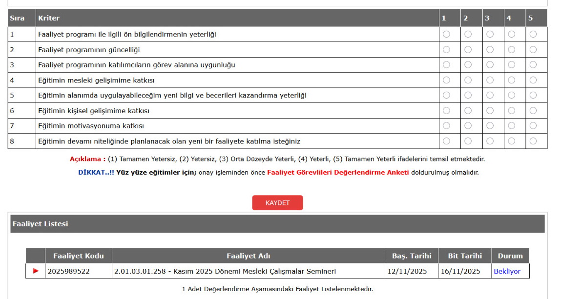 Faaliyet Değerlendirme İşlemi nasıl yapılacak?