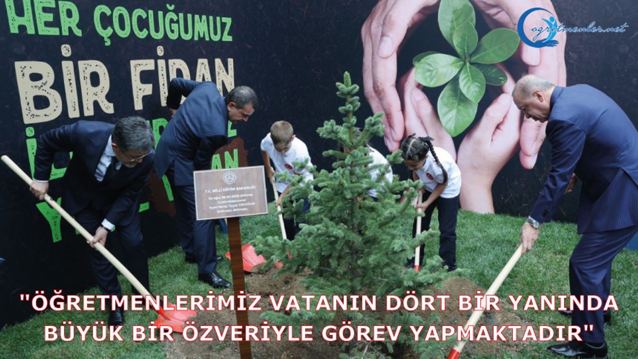 Cumhurbaşkanı Erdoğan, program öncesinde okul bahçesine fidan diktikten sonra sınıfları gezerek öğrencilerle sohbet etti.