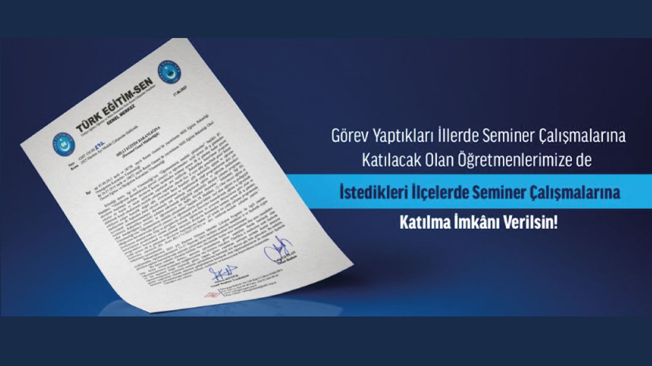 Bu karar isabetli olmakla birlikte, ancak bazı illerimizde ilçeler arası mesafenin iller arası mesafeden bile fazla olmasından dolayı, seminer çalışmalarına görev yaptıkları illerde katılacak olan öğretmenlerimiz açısından mağduriyetler söz konusu olacaktır. Özellikle il merkezine uzak ilçelerde ve bu ilçelere bağlı köylerde görev yapan, görev yaptıkları yerleşim yerinde ikamet etmeyen öğretmenlerimiz açısından seminer çalışmalarına katılmak son derece güç hale gelecektir. Bu nedenle, görev yaptıkları illerde seminer çalışmalarına katılacak olan öğretmenlerimize de istedikleri ilçelerde seminer çalışmalarına katılma imkânı verilmesi ve kamuoyuna duyurulması hususunda Milli Eğitim Bakanlığı’na yazılı başvuruda bulunduk.