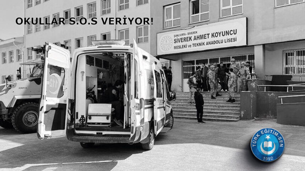 Genel Başkanımız açıklamasında şunları kaydetti: “Şanlıurfa’nın Siverek ilçesinde Ahmet Koyuncu Mesleki ve Teknik Anadolu Lisesi’nde bir öğrencinin gerçekleştirdiği silahlı saldırı sonucunda, öğretmen ve öğrencilerimizin de aralarında bulunduğu 16 vatandaşımızın yaralanmış olması hepimizi derinden sarsmıştır. Bu hain saldırıyı en güçlü şekilde kınıyoruz. Yaralanan eğitimcilerimize ve öğrencilerimize acil şifalar diliyor, ailelerine ve tüm eğitim camiamıza geçmiş olsun dileklerimizi iletiyoruz.
