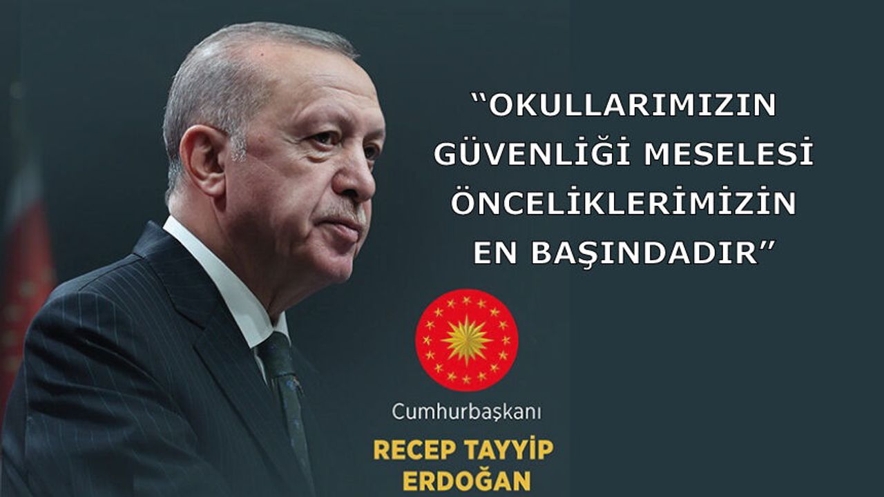 "Okullarımızın güvenliği meselesi önceliklerimizin en başındadır. Burada en küçük bir taviz söz konusu değildir ve olmayacaktır." ifadelerini kullanan Cumhurbaşkanı Erdoğan, güvenliğin yanı sıra gelişim psikolojisi, sosyal politika, ailenin rolü ve eğitim boyutlarıyla da bu meseleye yaklaşılmasının mühim olduğunu vurguladı.