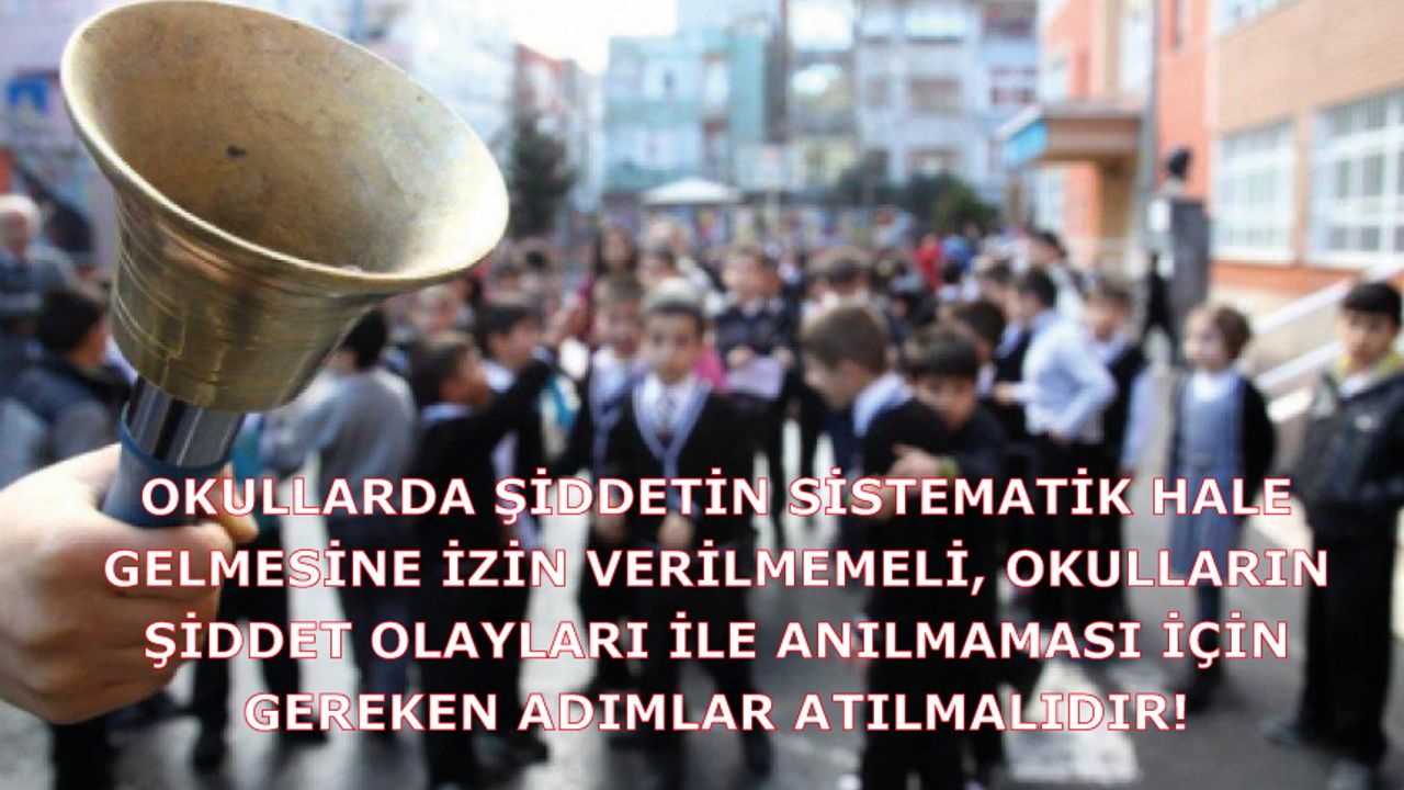 Toplumun her aşamasını kuşatan şiddet olgusu, son dönemde başta okullar olmak üzere, bütün eğitim kurumlarını esir almış durumdadır. Son bir ay içerisinde Ankara, Bursa İnegöl, Manisa Salihli ve Turgutlu, Mersin Anamur ve Samsun’da yaşananlar, okullardaki şiddetin artık münferit olaylar olmaktan çıkıp sistematik bir yıkıma dönüştüğünü göstermektedir.