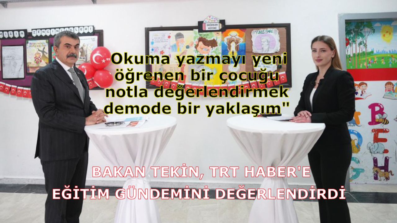 İlkokul 1 ve 2. sınıf öğrencilerine verilen "Öğrenci Gelişim Raporları"na ilişkin değerlendirmede bulunan Bakan Tekin, "Henüz okuma yazmayı yeni öğrettiğimiz bir çocuğu notla değerlendirmek artık çok demode bir yaklaşım, dünyada da pedagojik anlamda da... Biz de Türkiye Yüzyılı Maarif Modeli'yle beraber öğretmen arkadaşlarımızın sadece bir notla değil de kapsamlı bir biçimde öğrenciyi değerlendirdikleri, veliye rehberlik yaptıkları ve tatil dönemlerini daha faydalı geçirecekleri şekilde bir izleme tanımlama süreci başlattık. Sadece biz değil, dünya artık bu yöntemle eğitim öğretim süreçlerini devam ettiriyor ve öğretmen arkadaşlarımız tarafından da çok takdirde karşılandı." şeklinde konuştu.