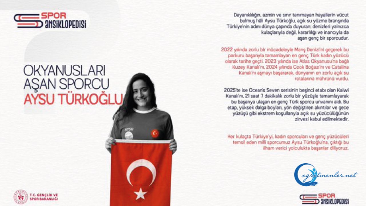 @gencliksporbak#SporAnsiklopedisi’nde bu hafta: okyanusları cesareti, mücadelesi ve azmiyle bir bir aşan millî sporcumuz Aysu Türkoğlu’na yer verdik! Okyanus 7’lisi yolunda kulaçlarıyla tarih yazan millî sporcumuzu gönülden tebrik ediyor, başarılarının devamını diliyoruz…