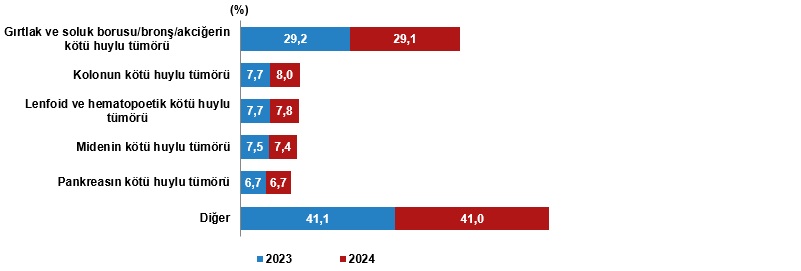 İyi ve kötü huylu tümörlerden kaynaklı ölümlerin oranı, 2023, 2024