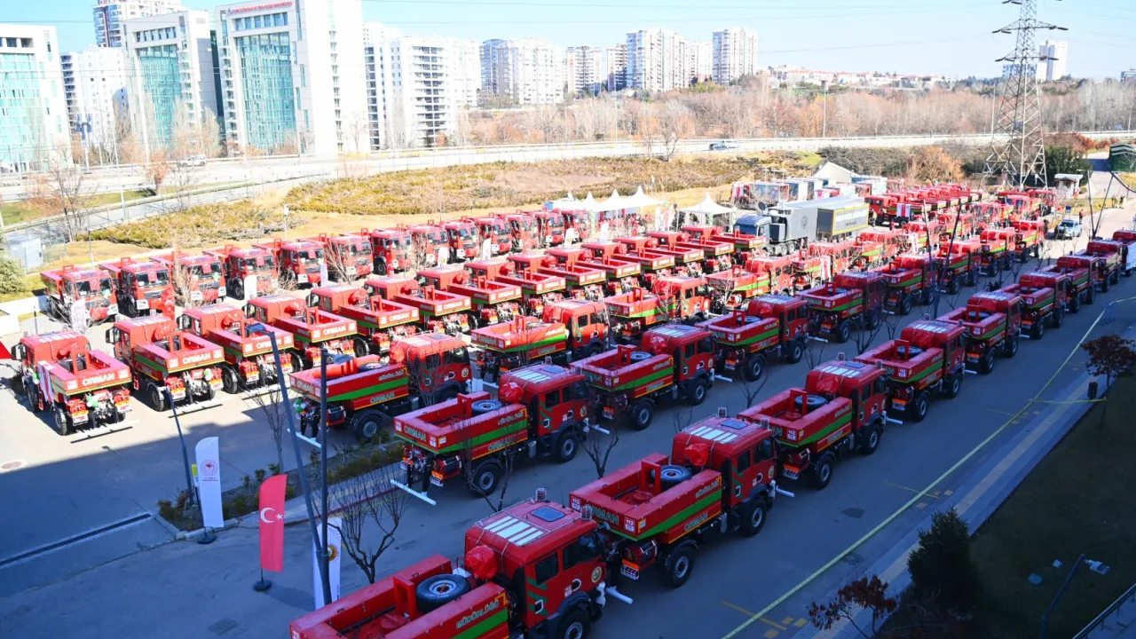 Yeni araçlara ilişkin bilgi veren Bakan Yumaklı, "Orman yangınlarıyla mücadele için 65 arazöz, ORKUT timlerimizin kullanacağı 8 afet ilk müdahale aracı ve 1 yangın mobil harekat merkezi yönetim aracı bugünden itibaren yeşil vatanımızı savunmak için saflarımıza katılmış olacak." dedi.