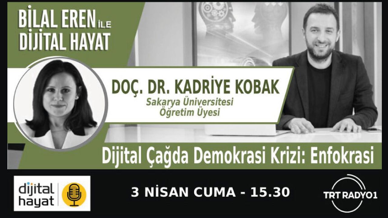 Demokrasi, "Enfokrasiye" mi Dönüştü? Örneklerle Enformasyon Yoğunluğu ve Özgürlük İllüzyonu Çağı? Yarın saat 15.30'da Dr. Bilal Eren ile #DijitalHayat programımızın canlı yayın konuğu Doç. Dr. Kadriye Kobak TRT Radyo1