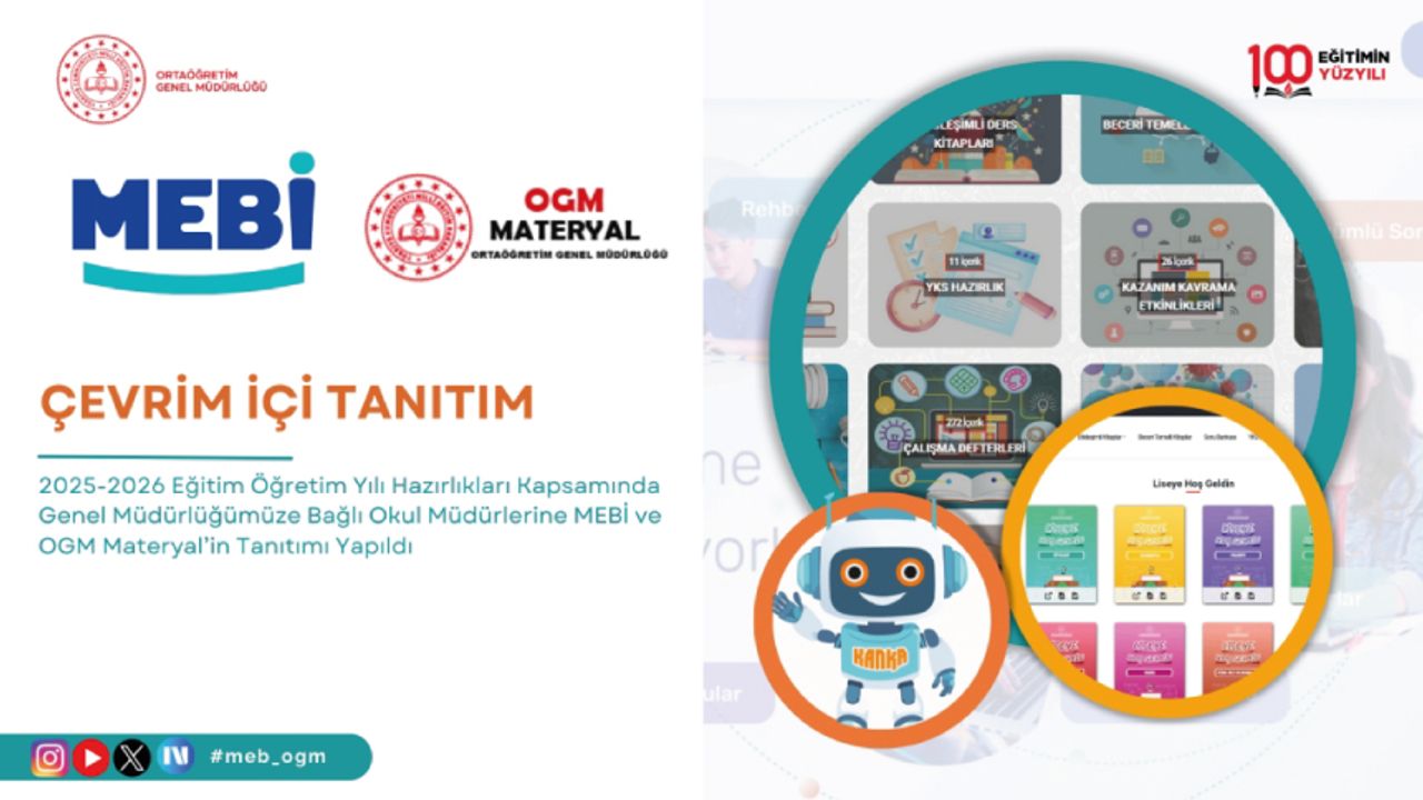 Genel Müdürlüğümüz, 2025-2026 eğitim öğretim yılında da öğrencilerin akademik, sosyal ve kişisel gelişimlerini destekleyecek dijital içeriklerin kapsamını genişletmeye ve yenilikçi uygulamaları hayata geçirmeye devam edecektir. MEBİ ve OGM Materyal'in sunduğu imkânlarla, öğrencilerin öğrenme süreçlerinde etkin bir rol üstlenmeleri, öğretmenlerin ise derslerde daha verimli ve çağın gerekliliklerine uygun yöntemler kullanmaları hedeflenmektedir.