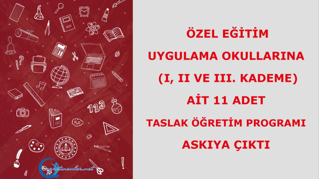 Türkiye Yüzyılı Maarif Modeli kapsamında Özel Eğitim ve Rehberlik Hizmetleri Genel Müdürlüğünce güncellenen Özel Eğitim Uygulama Okullarına (I, II ve III. kademe) ait 11 adet taslak öğretim programı Başkanlık Makam Onayı ile 13 Temmuz 2025 tarihine kadar paydaşların görüş ve önerilerini almak üzere https://mufredat.meb.gov.tr/TaslakProgramlar.aspx adresinde askıya çıkarılmıştır.