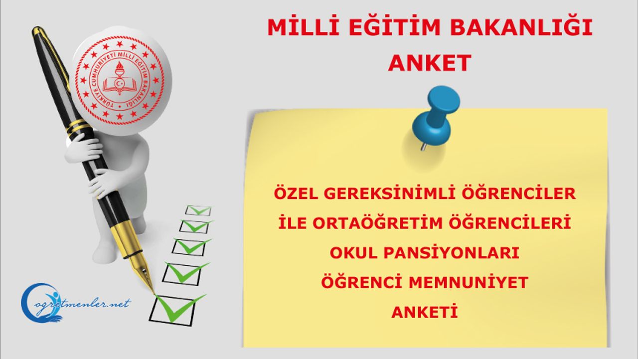 Bu anket Özel Eğitim ve Rehberlik Hizmetleri Genel Müdürlüğü bünyesindeki pansiyonlarda kalan özel gereksinimli öğrencilere uygulanacaktır.