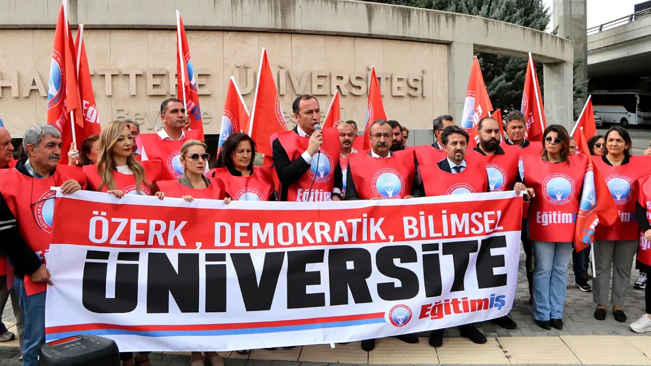 Eğitim-İş olarak, 2025-2026 akademik yılı başlarken üniversiteleri hedef alan her türlü müdahaleye, bilimin susturulmasına, akademinin siyasi baskılarla şekillendirilmesine ve üniversitelerin rant odaklı politikalarla yönetilmesine karşı Ankara’da Hacettepe Üniversitesi önünde ve Türkiye genelindeki üniversitelerdeydik. Üniversitelerdeki yapısal sorunları, akademik özgürlüklerin kısıtlanmasını, liyakat eksikliğini, öğrencilerin yaşadığı ekonomik ve sosyal zorlukları vurguladık; bilimin ışığında, özerk ve demokratik üniversite istedik.