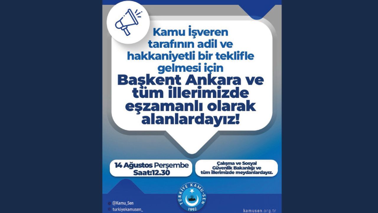 Daha adil ve hakkaniyetli bir teklif için 14 Ağustos Perşembe günü Ankara’da ve tüm illerimizde eşzamanlı olarak alanlardayız.